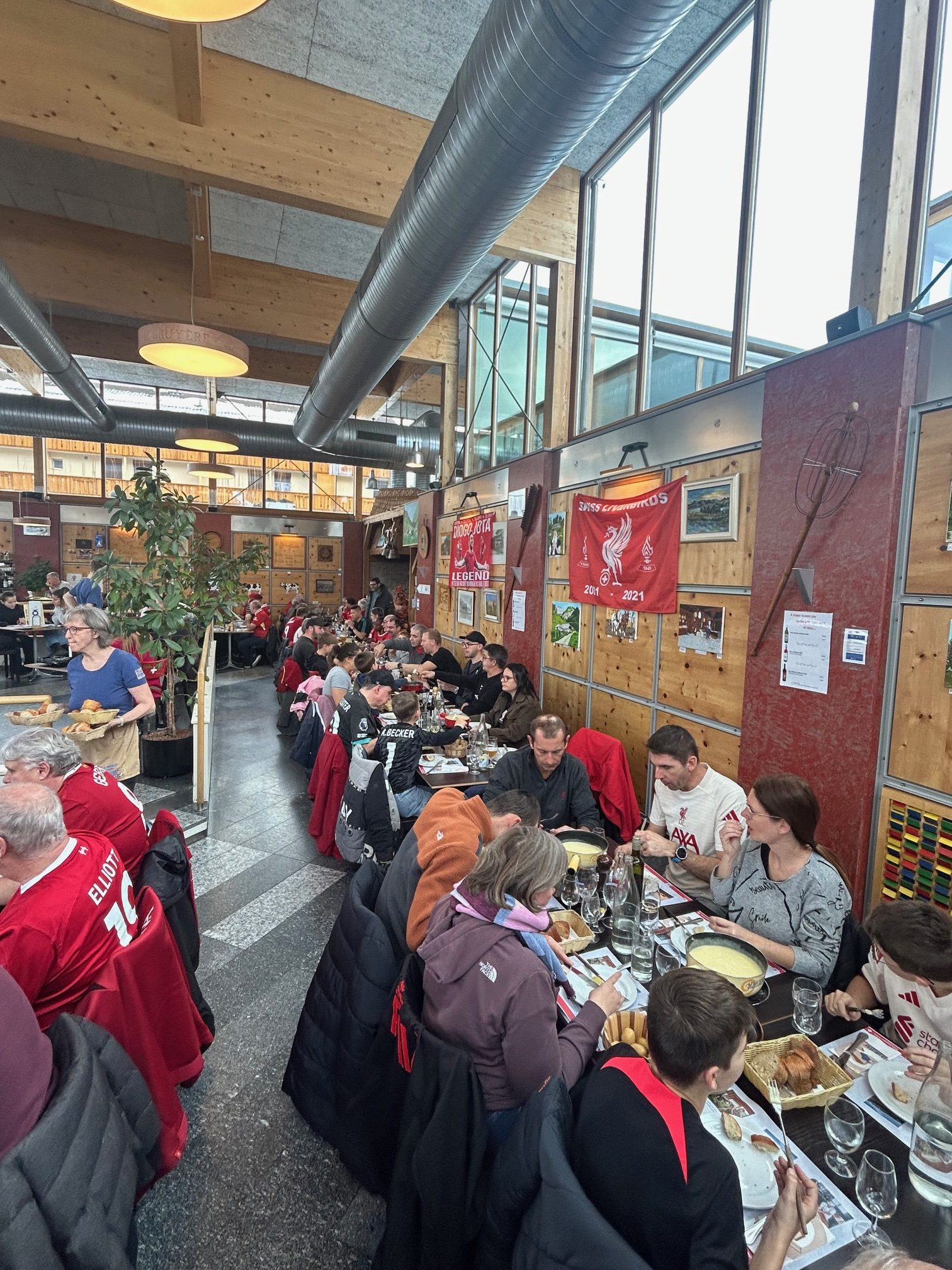 As a true Fribourg native, David decided to welcome us to the Maison du Gruyère in Pringy. Certainly attracted by the fondue on the menu rather than West Ham v Liverpool, 120 people (members and their families/friends) signed up and joined us for the event! It was a historic occasion for Swiss Liverbirds to welcome so many members for Christmas.